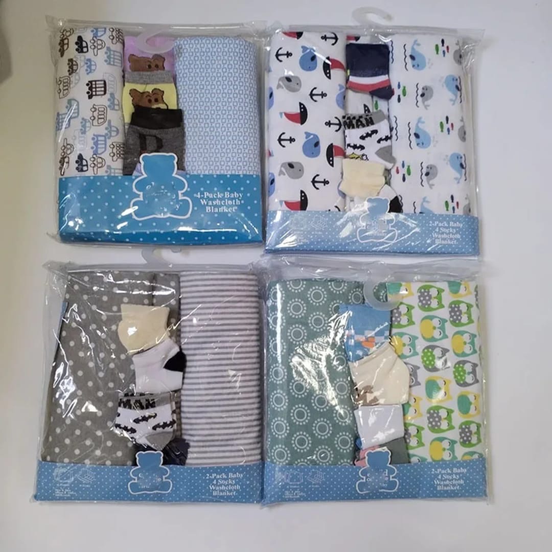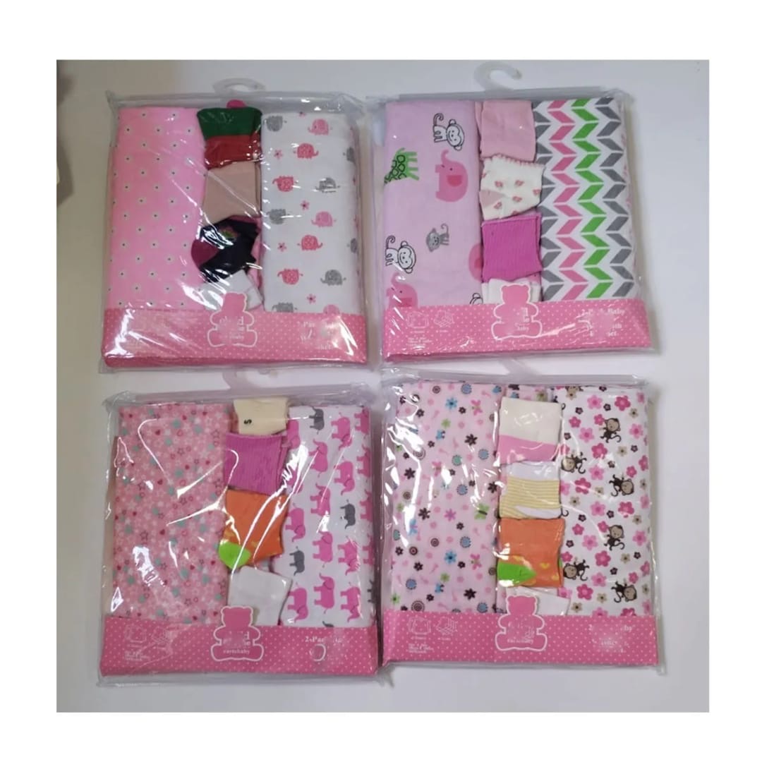 It contains 2 pieces and 4 pairs of socks. Each piece is 2 yards making a set of 4 yards sheets.