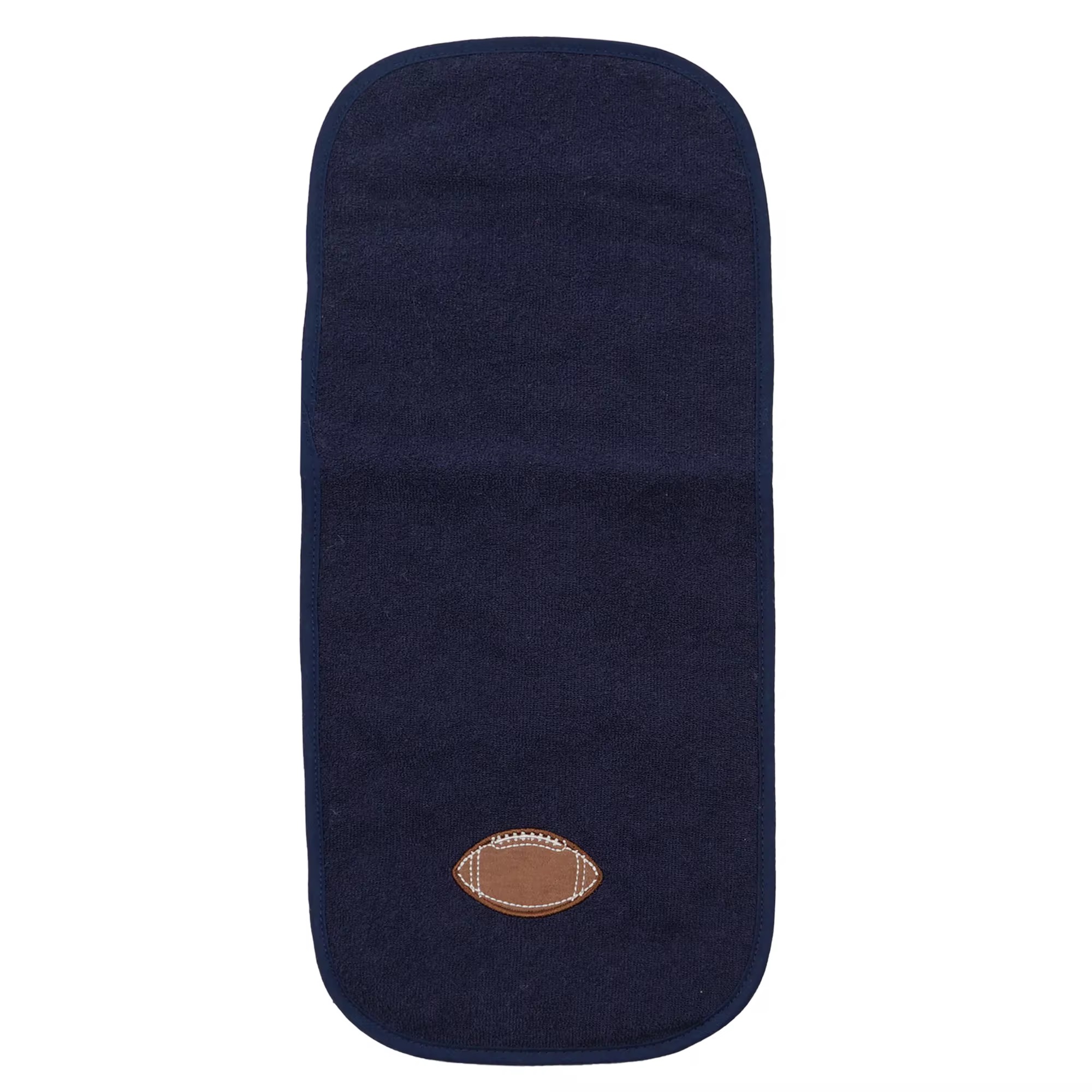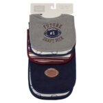 100% cotton. A set contains 3 bibs and 2 burp cloths