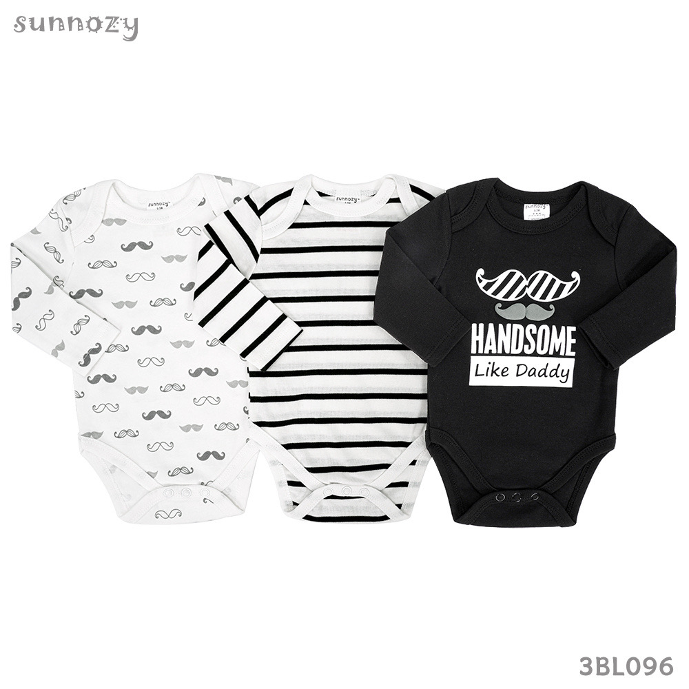 100% cotton long sleeves bodysuits. The sizes are 0-3m/3-6m/6-9m