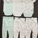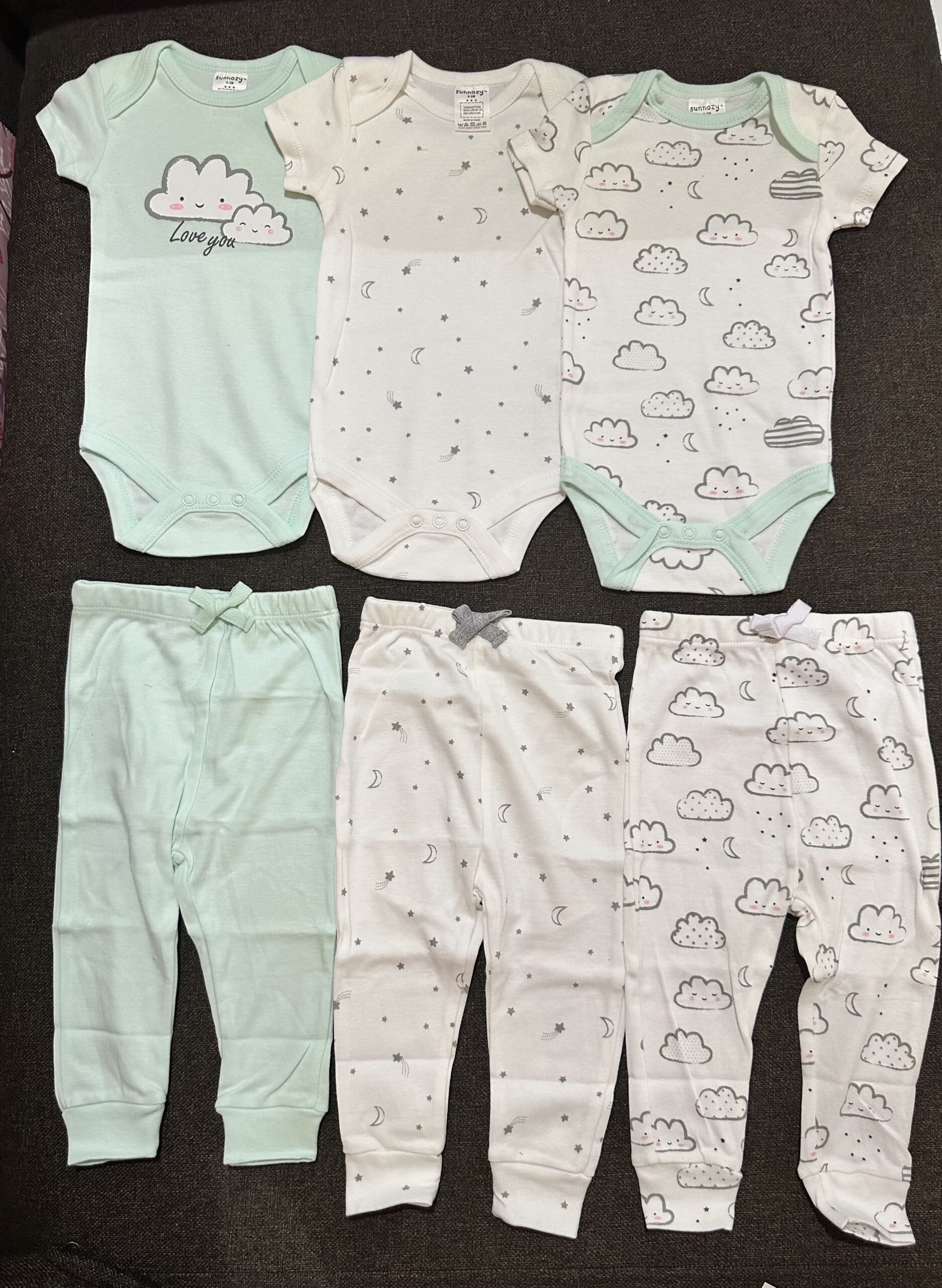 100% cotton bodysuits with its matching joggers The sizes are 0-3m/3-6m/6-9m