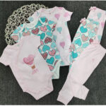 100% cotton bodysuits with its matching joggers The sizes are 0-3m/3-6m/6-9m