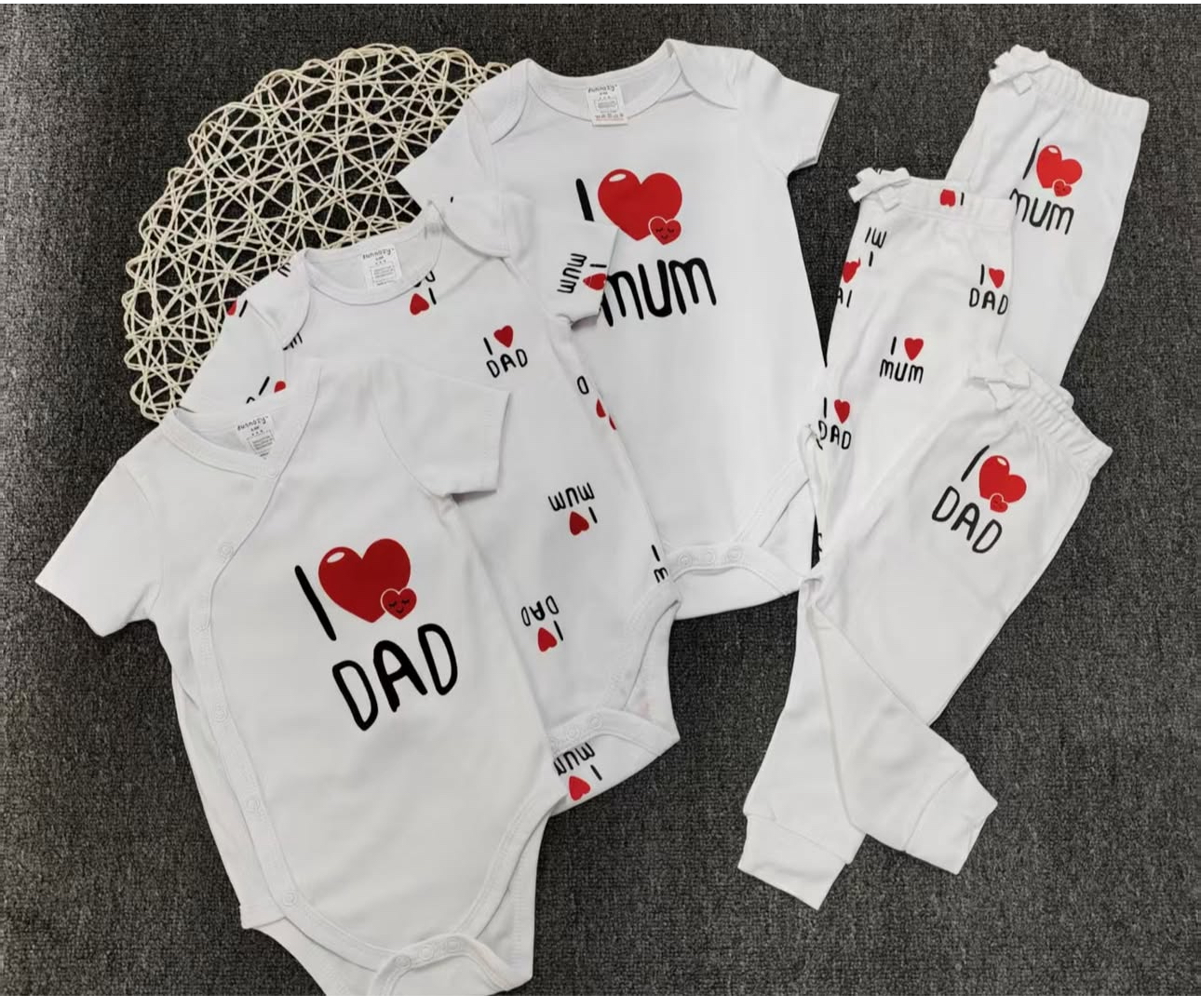100% cotton bodysuits with its matching joggers The sizes are 0-3m/3-6m/6-9m