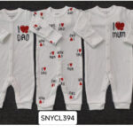 A set contains 3 sleep suits with button closure